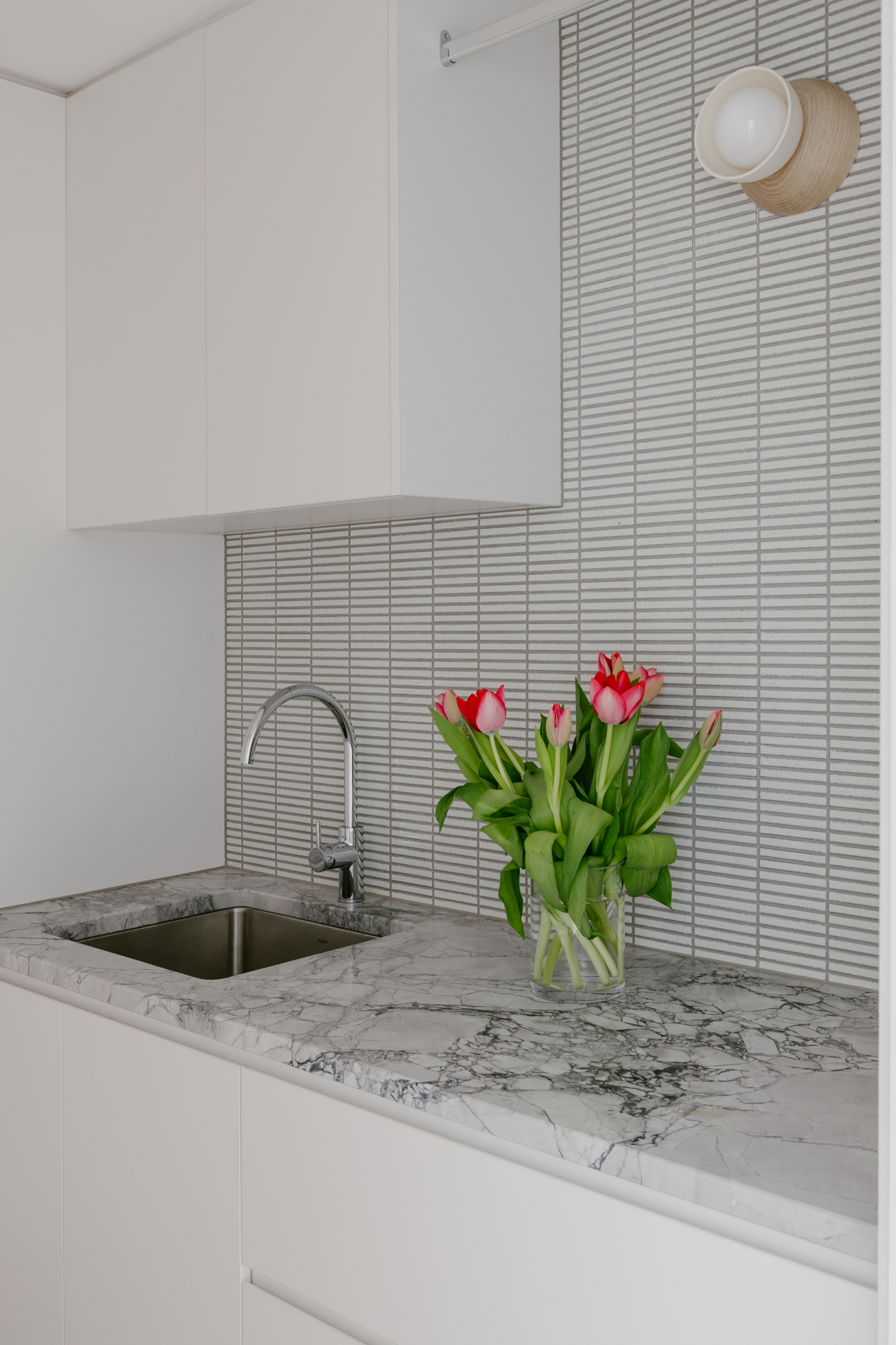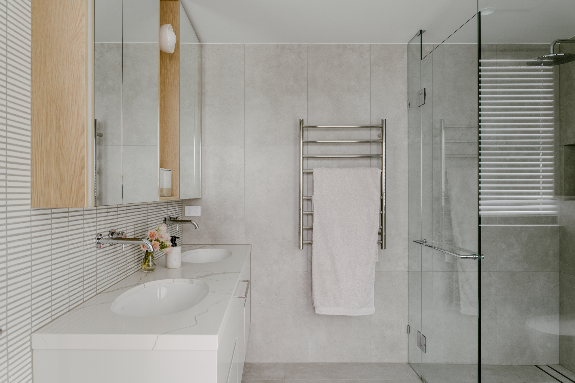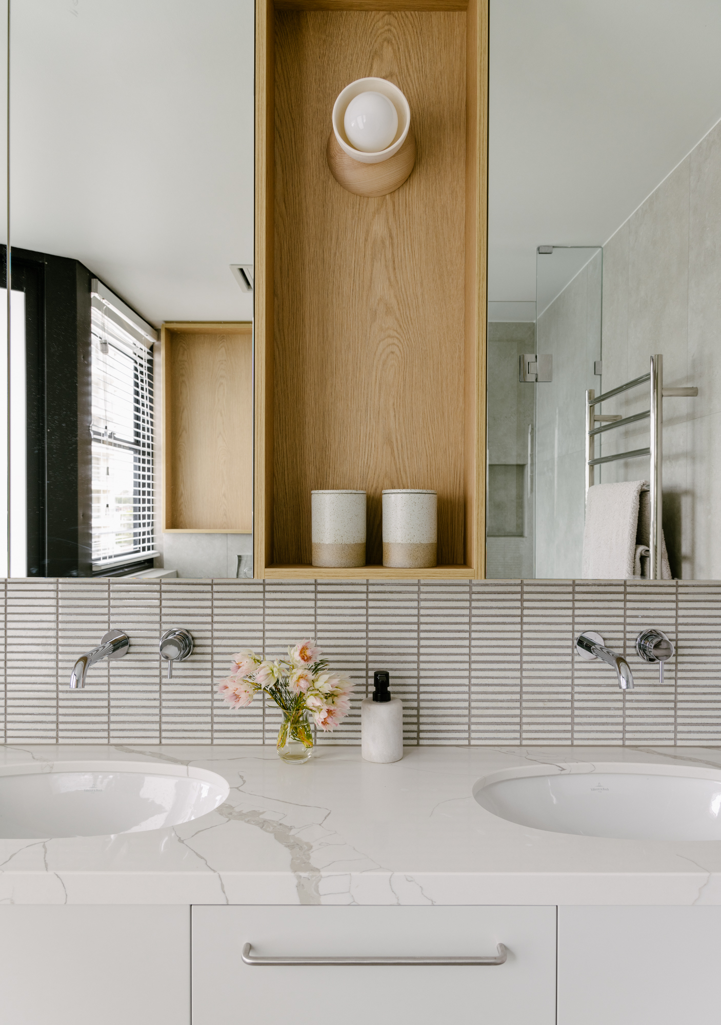The penthouse is light and very well ventilated which was important to the owners. The fixtures and fittings have been carefully selected to create a warm, modern home. The curves also have some practicality to them minimising corners and creating softer transitions.
