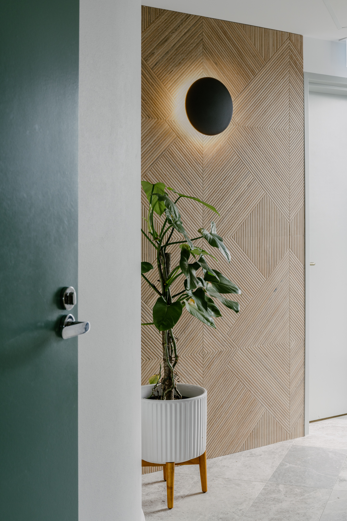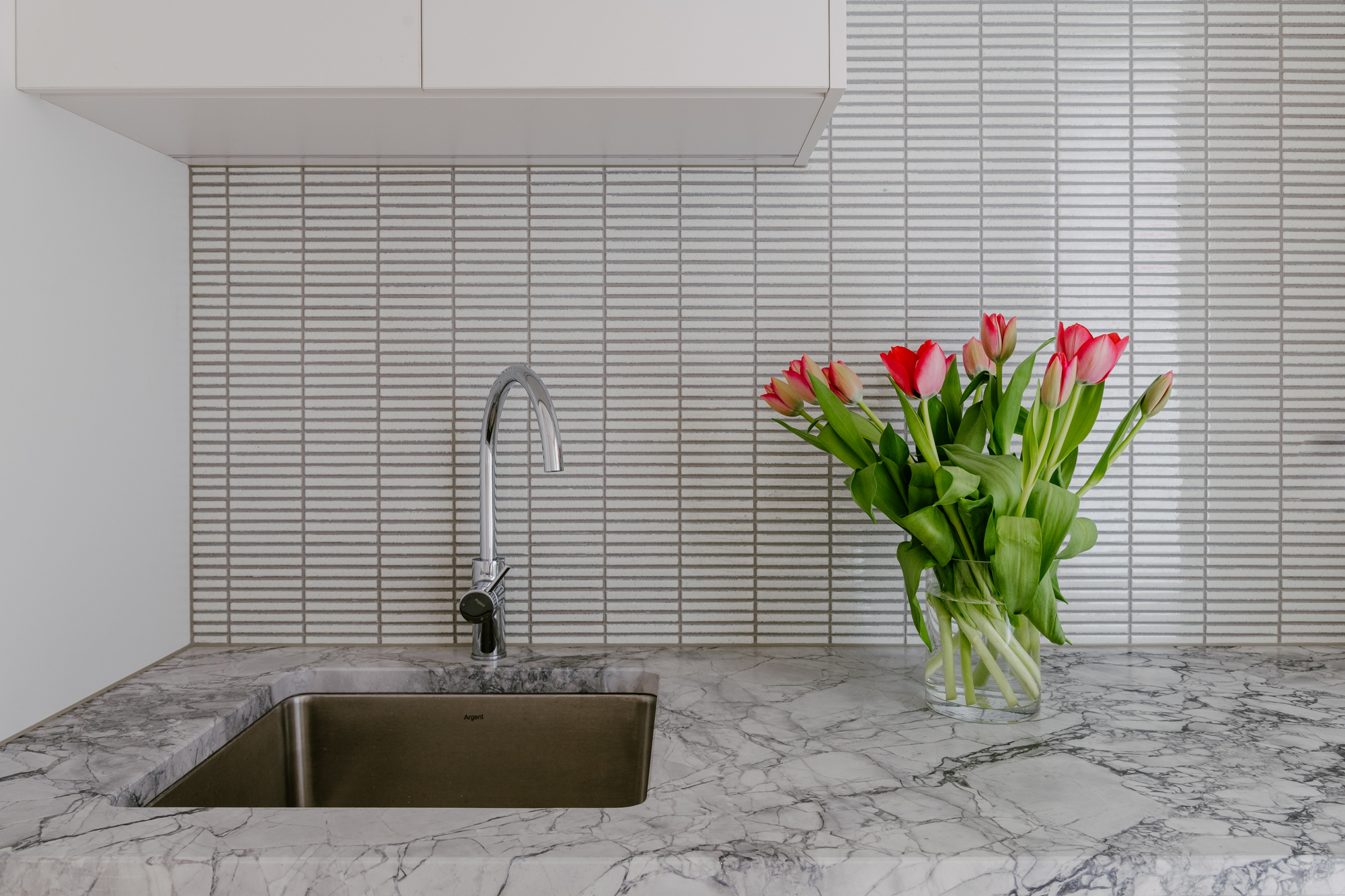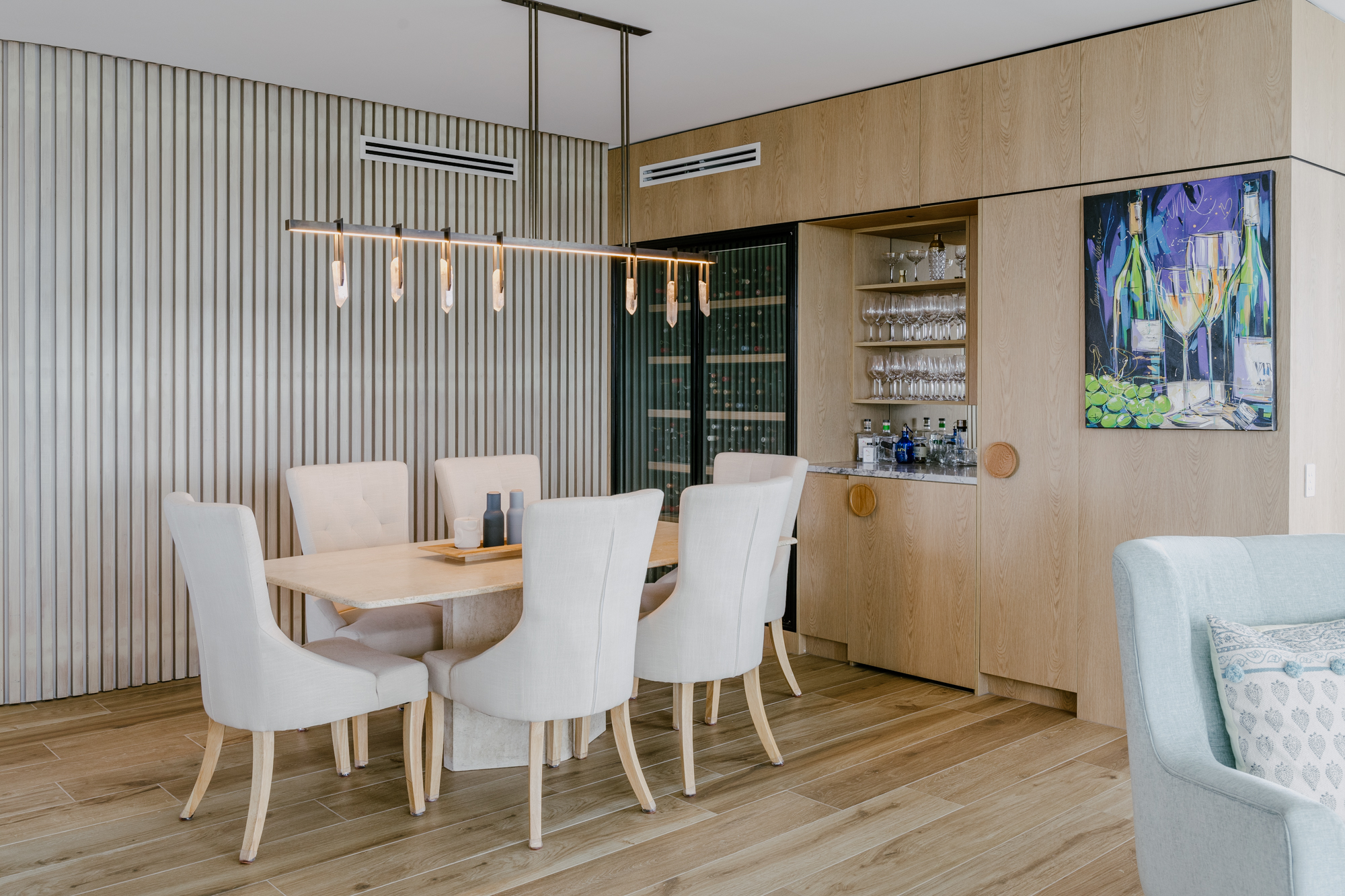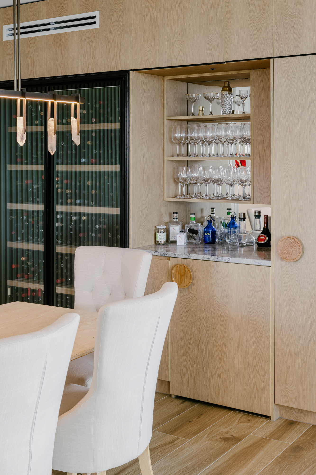 The penthouse is light and very well ventilated which was important to the owners. The fixtures and fittings have been carefully selected to create a warm, modern home. The curves also have some practicality to them minimising corners and creating softer transitions.