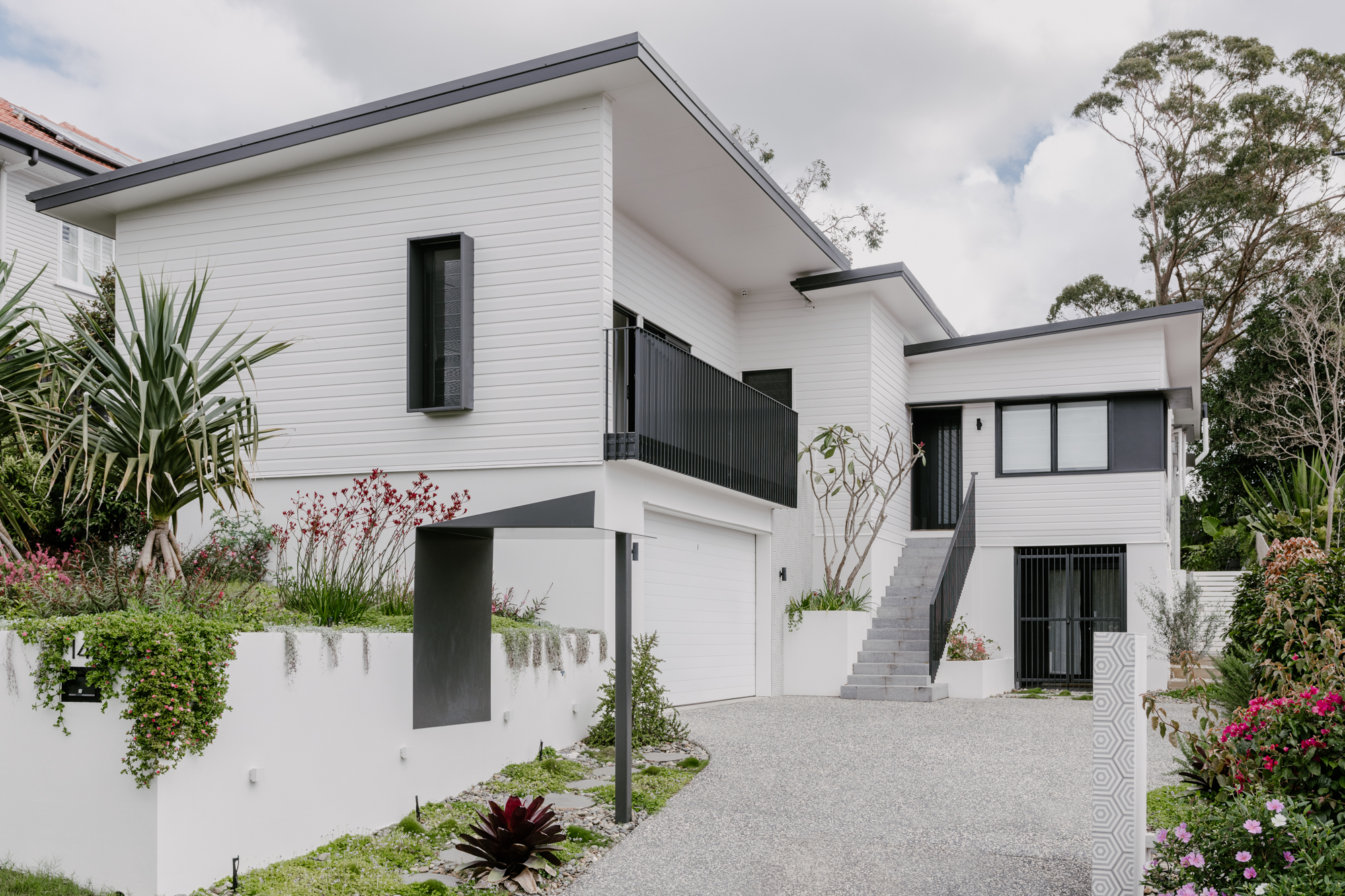 SCOPE OF WORK: Bringing together a palette of crisp white, grey, and black, the utilization of concrete and raw materials brings a softness and rich quality to the home. Built for Brisbane's beautiful subtropical climate, the house has a relaxed welcoming vibe.